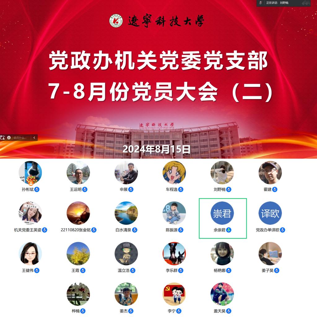 8月15日上午,黨政辦機關黨委黨支部通過騰訊會議召開黨員大會,圍繞黨的二十屆三中全會精神開展集體學習和“讀看思研”活動。黨支部書記李寧主持會議。