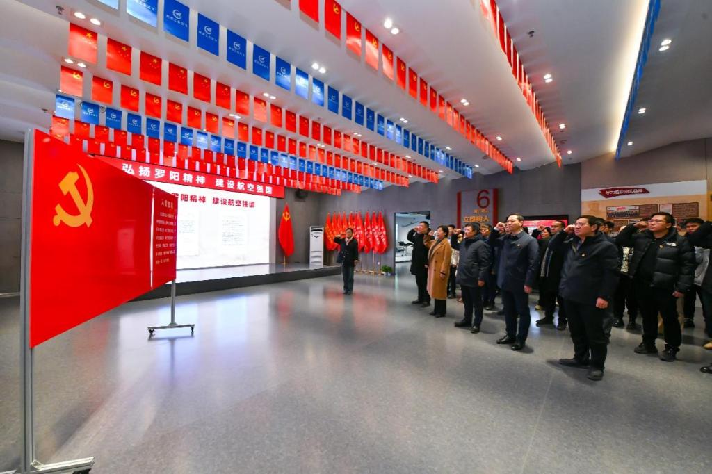 隨后,黨員們來到了沈飛航空博覽園。博覽園主展館分為序館、藍天夢圓館、航空報國館、振翮高飛館、創新超越館、功炳天疆館、展翅翱翔館和羅陽紀念館8個展館,分主題展示了從早期國產殲擊機的研發歷程到現代先進戰機的科技創新成果,展示了我國航空工業在國際合作和技術交流方面的成就,展望了未來中國航空工業的發展趨勢和愿景。黨員們通過觀看殲5、殲教6、殲8、殲11、鶻鷹等一架架戰機,感受到了國之重器的威嚴;從羅陽同志先進事跡中,學習了一代代航空人踔厲拼搏、奉獻藍天的航空報國精神,深刻體會到了遼寧作為新中國航空工業發祥地之一在黨和國家戰略全局中具有的特殊重要地位。參觀最后,全體黨員面向黨旗重溫入黨誓詞。