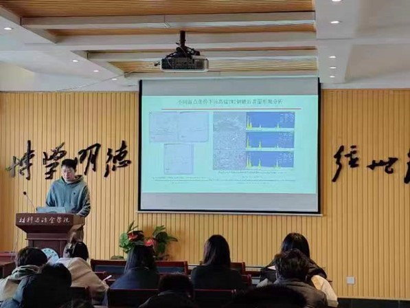 任廷棟老師報告主題為“汽車用高錳鋼選擇性氧化對熱浸鍍鋅性能影響的研究”。汽車用高錳鋼具有高強(qiáng)度和高塑性的優(yōu)良結(jié)合,但是熱浸鍍鋅后表面質(zhì)量較差。任老師對熱浸鍍鋅過程中不同工藝條件下表面氧化物的形成展開了研究分析,以期實現(xiàn)熱浸鍍鋅工藝的優(yōu)選,為工業(yè)生產(chǎn)提供理論參考。