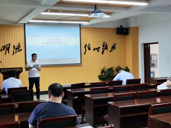 6月25日,材料與冶金學院在明德樓A523召開本科教育教學審核評估推進會。學院副院長(主持工作)艾新港、副院長呂哲、各系主任、支部書記及相關負責人參加會議。