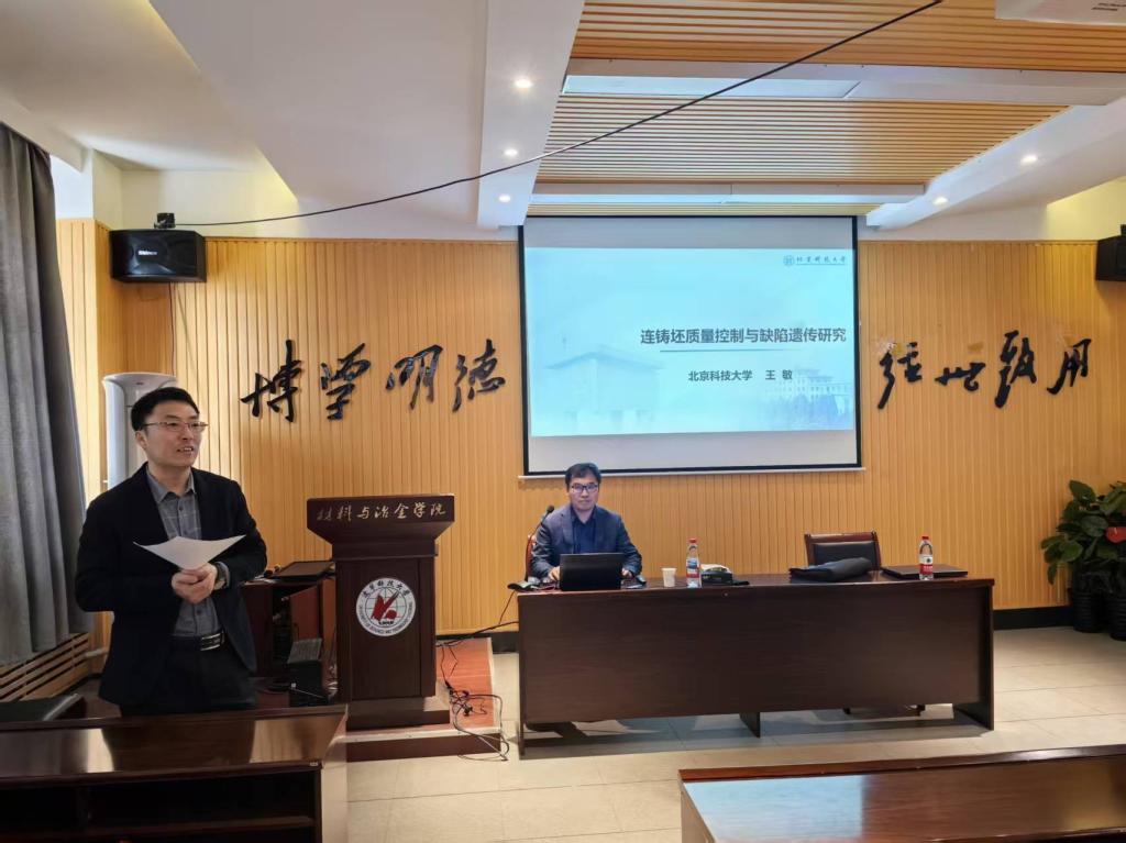 王敏教授蒞臨材冶學院作《連鑄坯質量控制與缺陷遺傳》學術報告