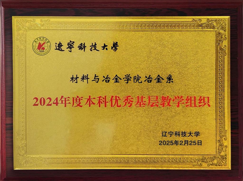 近期,遼寧科技大學材料與冶金學院冶金系榮獲“2024年遼寧科技大學本科優秀基層教學組織”殊榮。該榮譽是對我院冶金系在教學改革、師資隊伍建設、科研創新以及產教融合等領域取得顯著成就的高度認可。