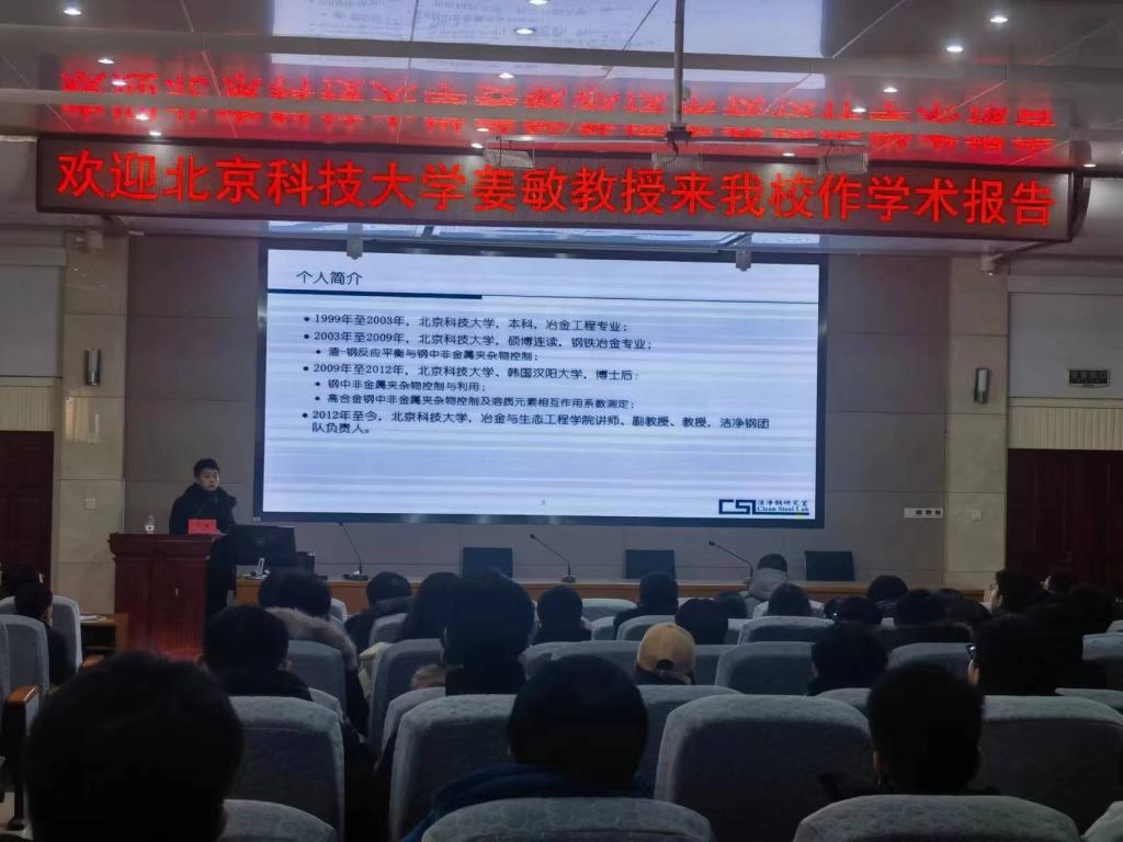 12月22日,北京科技大學姜敏教授應邀為遼寧科技大學材料與冶金學院師生作了題為《硅脫氧線材中夾雜物控制技術》的學術報告。