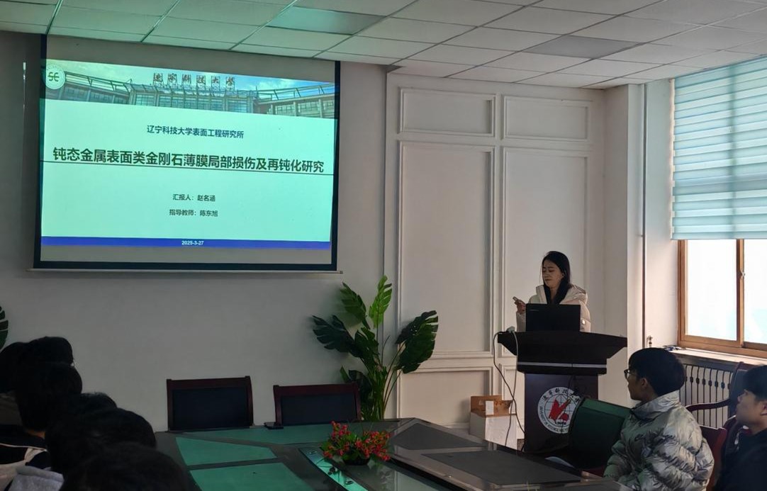 趙名涵博士報告主題為“鈍態金屬表面類金剛石薄膜局部損傷及再鈍化研究”。本工作系統揭示了類金剛石(DLC)薄膜在海洋腐蝕環境中的失效機制與修復策略,深入分析非金屬元素摻雜對DLC薄膜內部結構和局部水化學的調控作用,探討如何通過優化摻雜策略來改善薄膜的本征性能、提高薄膜耐蝕性;研究了在吸附型緩蝕劑作用下DLC薄膜的自愈合時間與點蝕潛伏期之間的關系,建立劃痕愈合與局部腐蝕潛伏期模型,旨在深入理解薄膜在嚴苛海洋環境中的損傷行為和自修復機制。