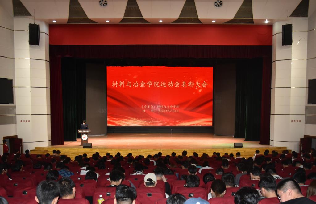 2023年5月31日,材冶學院在校禮堂召開運動會表彰大會。會議由院學生會執行主席薛曙冰主持,學院黨委副書記、副院長、紀委書記艾英華、學辦主任賈學龍、團委副書記高守祺、各專業輔導員、運動會全體運動員、團委學生骨干、學生會學生骨干、22級全體學生及21級各班級班團骨干參加會議。
