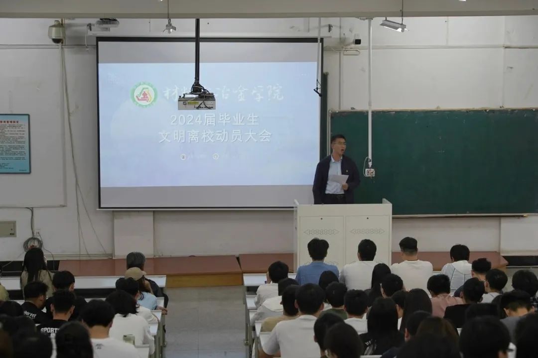 為進一步做好畢業生的安全管理及文明離校工作,確保畢業生順利、文明、安全地畢業離校。5月30日,學院在一號樓C102召開2024屆畢業生文明離校動員會。院黨委副書記、副院長兼紀委書記艾英華、全體畢業班輔導員以及2024屆各畢業班班委共112人參加會議。