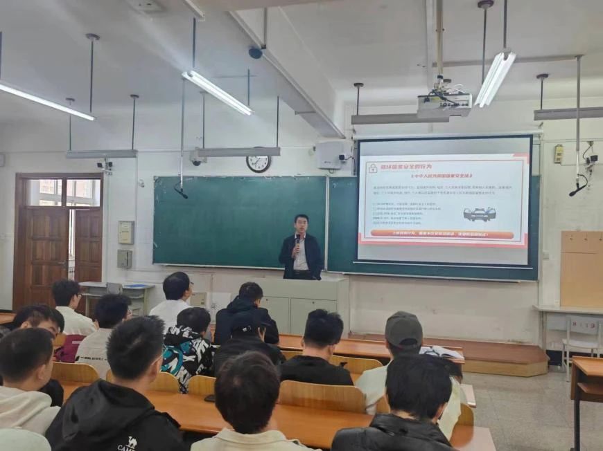 在互動(dòng)環(huán)節(jié),同學(xué)們圍繞課程設(shè)置、科研實(shí)踐、就業(yè)前景等話題踴躍提問(wèn),艾英華結(jié)合行業(yè)發(fā)展趨勢(shì)與人才培養(yǎng)經(jīng)驗(yàn)逐一解答。最后,適逢全民國(guó)家安全教育走深走實(shí)十周年之際,他通過(guò)解讀國(guó)家安全內(nèi)涵、剖析16個(gè)重點(diǎn)領(lǐng)域安全形勢(shì),系統(tǒng)開(kāi)展國(guó)家安全主題教育。他重點(diǎn)闡述了大學(xué)生在維護(hù)網(wǎng)絡(luò)信息安全、防范意識(shí)形態(tài)滲透中的責(zé)任擔(dān)當(dāng),并引導(dǎo)同學(xué)們?cè)谌粘W(xué)習(xí)生活中提升保密意識(shí)、規(guī)范網(wǎng)絡(luò)言行。