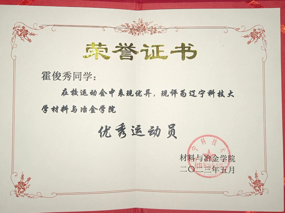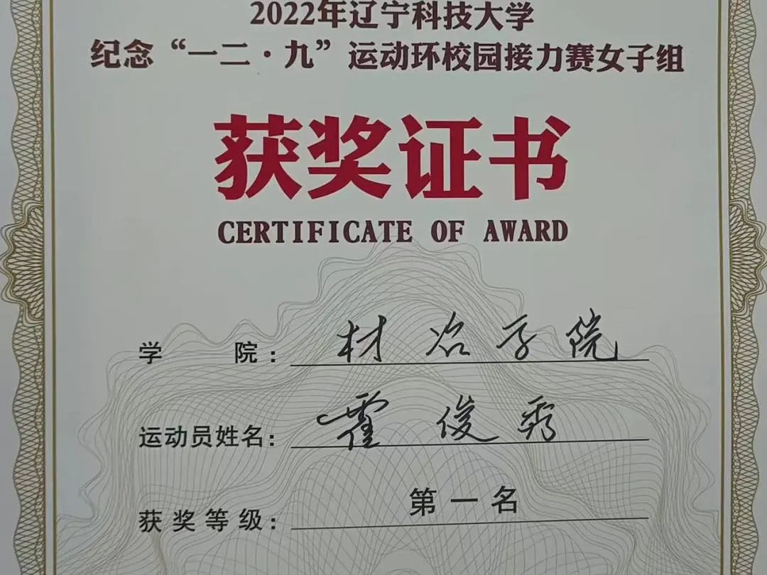 我是一名大二學生,來到學校,學校給了我很多顯示自己特長的機會,在大一上半年參加129環校園接力比賽,跟隨材冶院體育部積極訓練, 盡自己最大努力為材冶院爭光,也從訓練中學到了很多,提升了很多,最后在129環校園接力比賽中獲得第一名的獎項。大一下半年參加校51屆運動會,在訓練期間不怠慢,聽取建議,積極改進進步,在運動會中也盡最大努力獲得了800米第一名400米第二名,10×400米接力第一名的好成績。