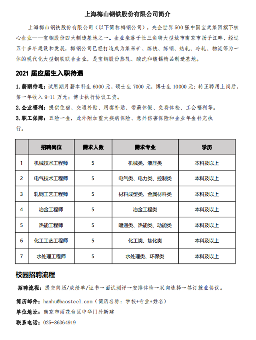 梅山鋼鐵公司招聘信息