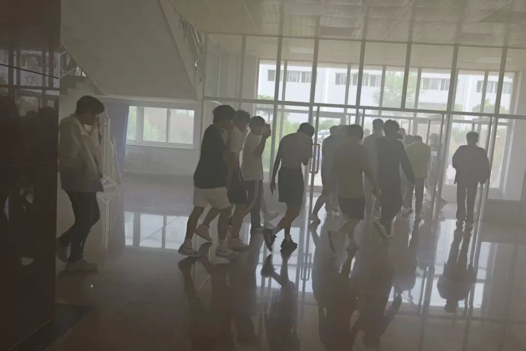 隨著急促的警報聲響起,演練正式啟動。師生們用濕毛巾、衣物等捂住口鼻,沿預定路線彎腰低姿疏散,在各樓層引導員的指揮下,快速有序撤離至安全區域,展現出良好的應急素養。