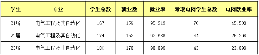 電氣工程及其自動化專業在我院就業工作中一直穩扎穩打,高度重視畢業生就業方向與其專業的匹配度和畢業生的就業期待,專業教師深入開展教學創新實踐,奔赴一線開展企業調研和崗位實踐,加深教師對于生產一線的了解,以及對崗位技術規范的要求,從而更好貼近項目工作場景和崗位開展專業教學,進一步提升理論聯系實際的能力,人才培養更加符合企業需求,為提升高質量就業夯實基礎。自專業開設以來,為國家電網等電力系統輸送大批人才。2023年電氣專業就業率98.89%,比2022年增長5.21%。