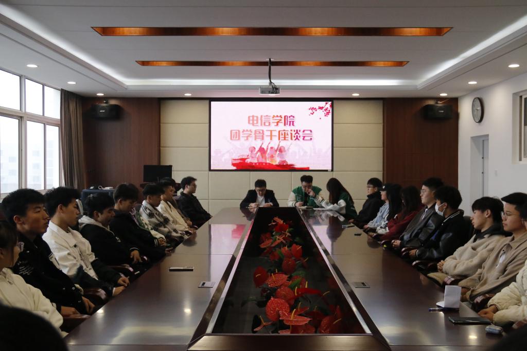 為進(jìn)一步深入學(xué)習(xí)貫徹遼寧省學(xué)生聯(lián)合會第十次代表大會精神,傾聽學(xué)生心聲,幫同學(xué)們“辦實(shí)事、解難題”。電信學(xué)院于4月5日在博聞樓313會議室召開團(tuán)學(xué)骨干座談會,本次會議由團(tuán)委工作人員郭亞主持,團(tuán)委老師劉洋、團(tuán)委副書記李金哲及全體22級團(tuán)學(xué)骨干參加。