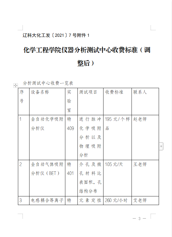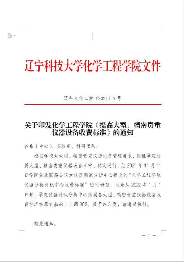 遼科大化工發〔2021〕7號 關于印發化學工程學院《提高大型、精密貴重儀器設備收費標準》的通知.doc