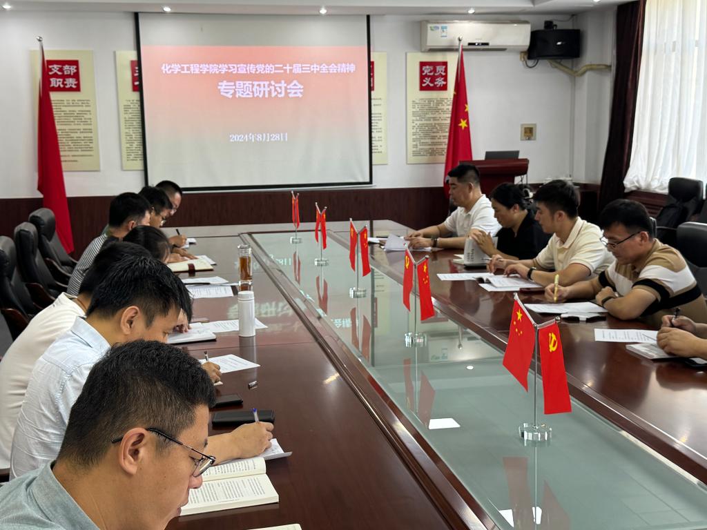 8月28日,在博觀樓B325會議室,化學(xué)工程學(xué)院組織召開學(xué)習宣傳黨的二十屆三中全會精神專題研討會。會議由學(xué)院黨委書記董德主持,學(xué)院班子成員、副科級以上領(lǐng)導(dǎo)干部、黨支部書記及系主任參加會議。
