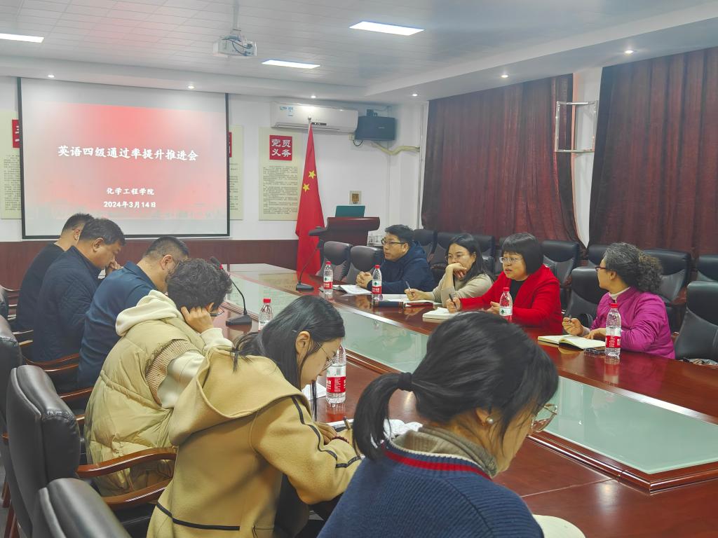 3月14日,化工學院在博觀樓B325召開大學英語四級通過率提升工作推進會。化工學院、外國語學院部分教師及相關輔導員參加座談。