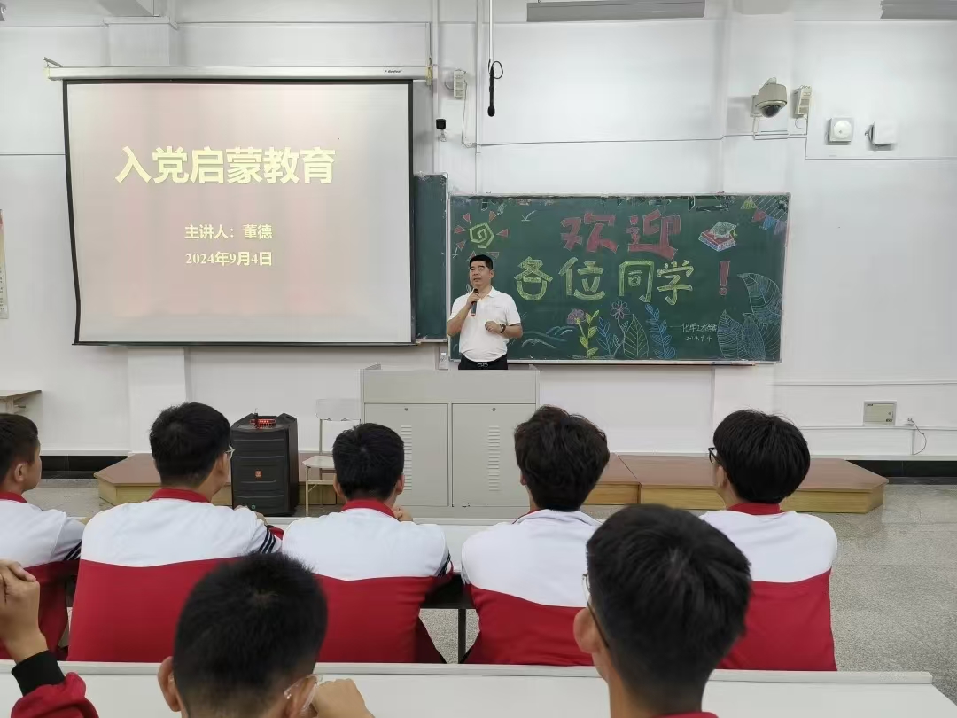 “青年是祖國的未來和希望,也是黨的未來和希望,國家的發展都得益于一代代青年的努力和奮斗”。董德圍繞理想信念、入黨的基本條件、入黨流程和黨史理論等內容展開詳細講解,他勉勵2024級新生端正入黨動機,要堅定不移聽黨話、跟黨走,懷抱夢想又腳踏實地,敢想敢為又善作善成,立志做有理想、敢擔當、能吃苦、肯奮斗的新時代好青年!