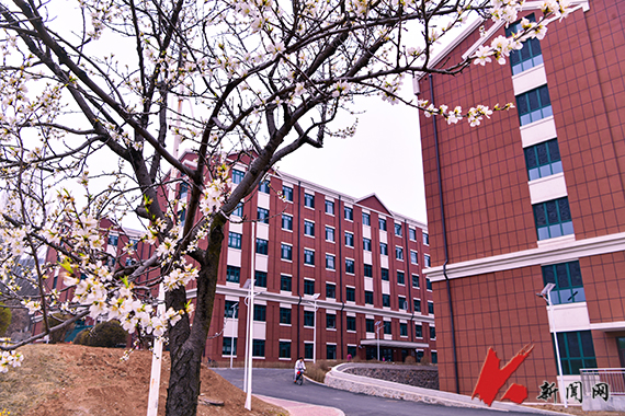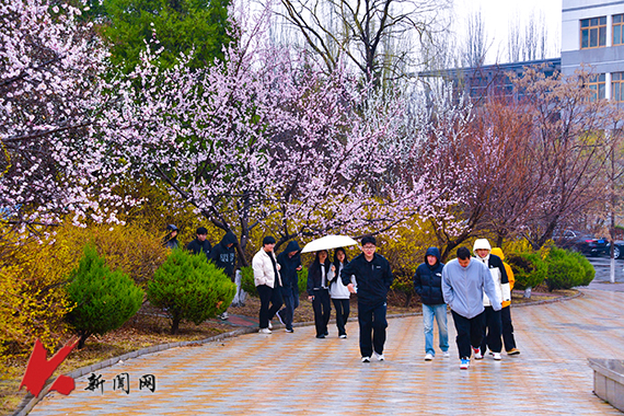 連翹金黃,櫻花如雪,——遼寧科技大學的春天從不遲到?!坝埠恕钡墓た圃盒E先崦来貉b,師生們在花香中奔赴課堂,構成了一幅獨特的遼科大春景圖。