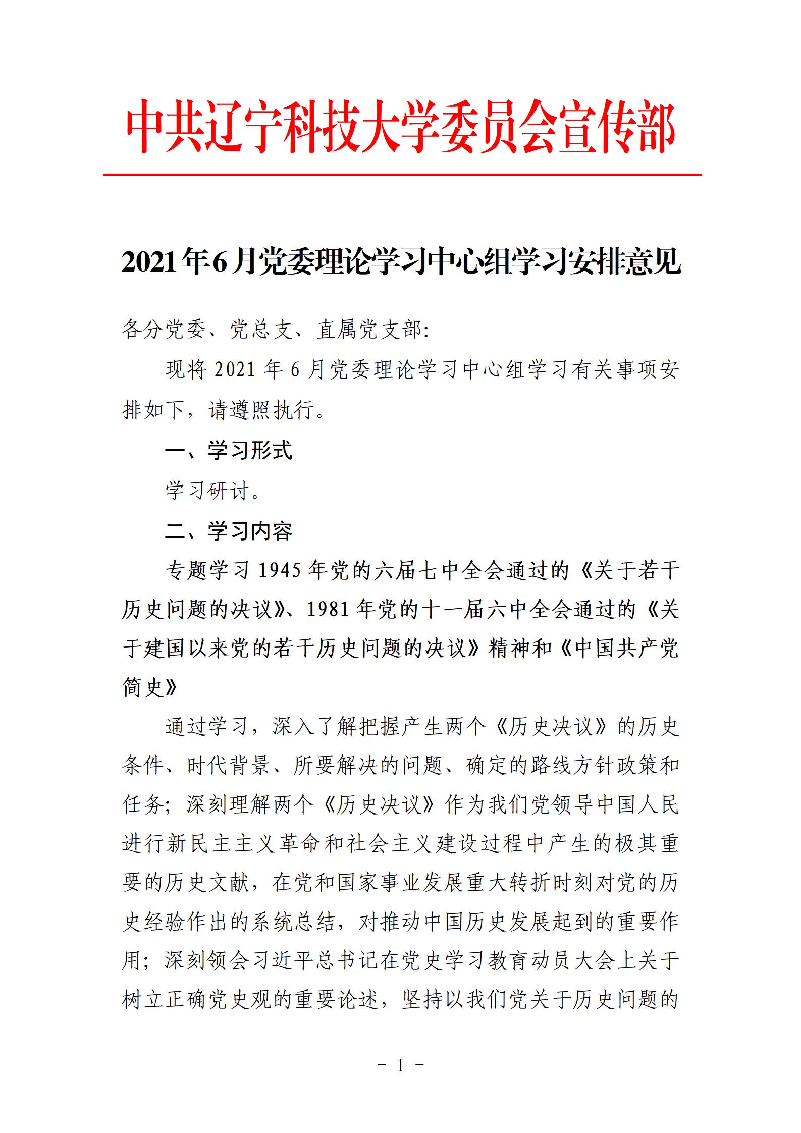 2021年6月黨委理論學(xué)習(xí)中心組學(xué)習(xí)安排意見