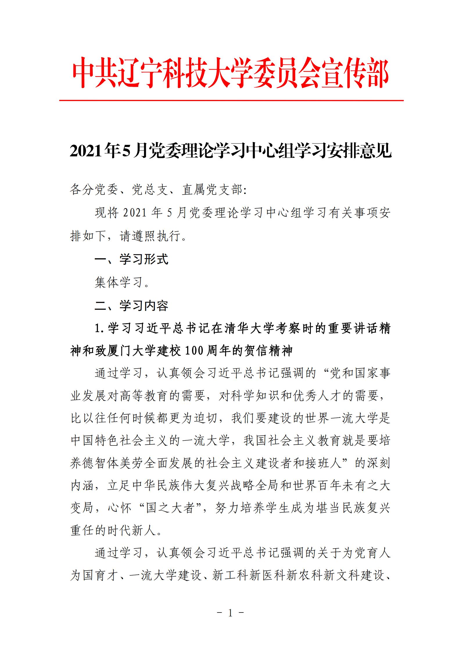 2021年5月黨委理論學(xué)習(xí)中心組學(xué)習(xí)安排意見
