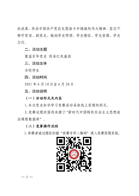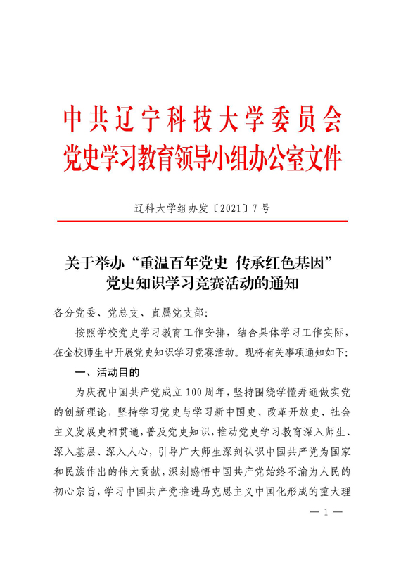 關于舉辦“重溫百年黨史 傳承紅色基因” 黨史知識學習競賽活動的通知