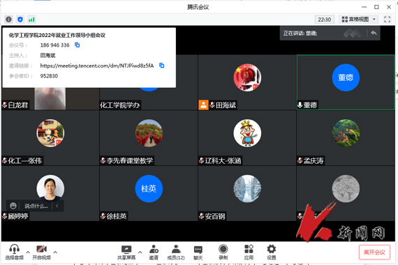 4月11日下午,遼寧科技大學化學工程學院線上組織召開就業工作領導小組會議,領導班子成員、系主任、學辦主任及畢業班輔導員參加會議。
