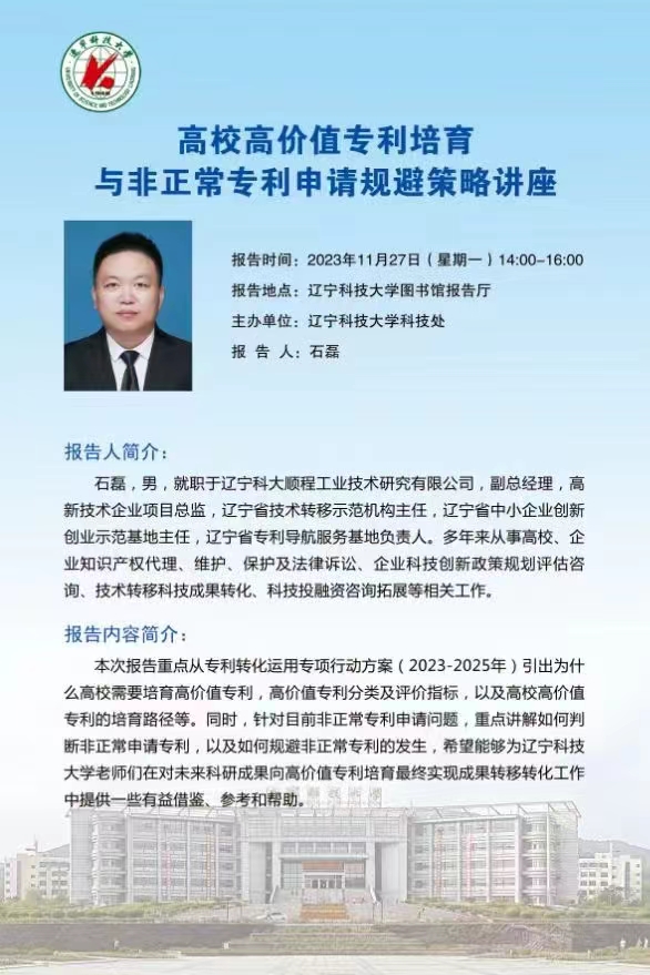 學術預告:高校高價值專利培育與非正常專利申請規避策略講座