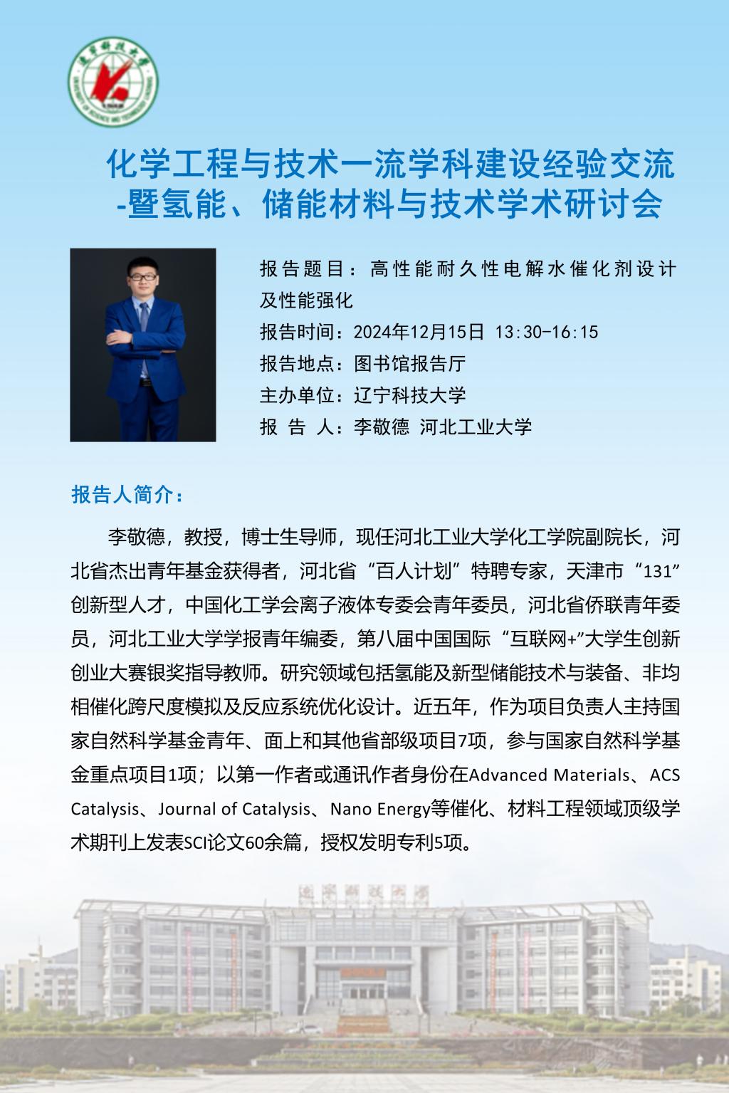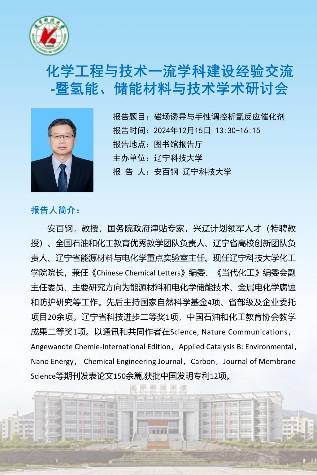 學術(shù)預告:化學工程與技術(shù)一流學科建設(shè)經(jīng)驗交流 -暨氫能、儲能材料與技術(shù)學術(shù)研討會