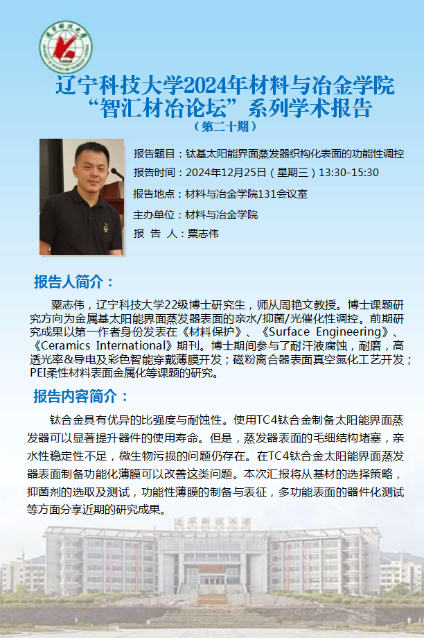 學術預告:鈦基太陽能界面蒸發器織構化表面的功能性調控