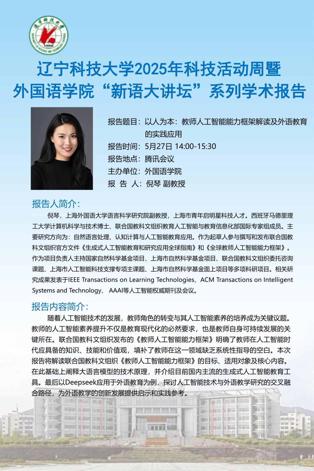 【科技活動周學術預告】以人為本:教師人工智能能力框架解讀及外語教育的實踐應用