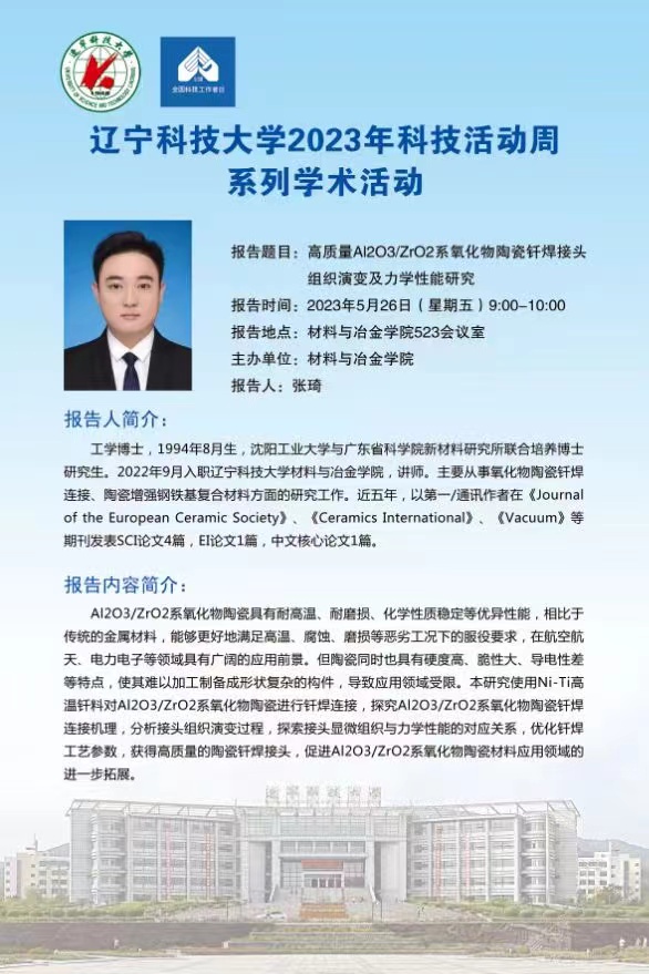 【科技活動周學術預告】高質量Al2O3/ZrO2系氧化物陶瓷釬焊接頭組織演變及力學性能研究