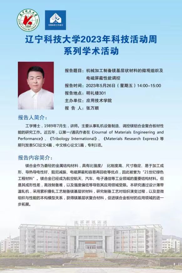 【科技活動周學術預告】機械加工制備鎂基層狀材料的微觀組織及電磁屏蔽性能調控