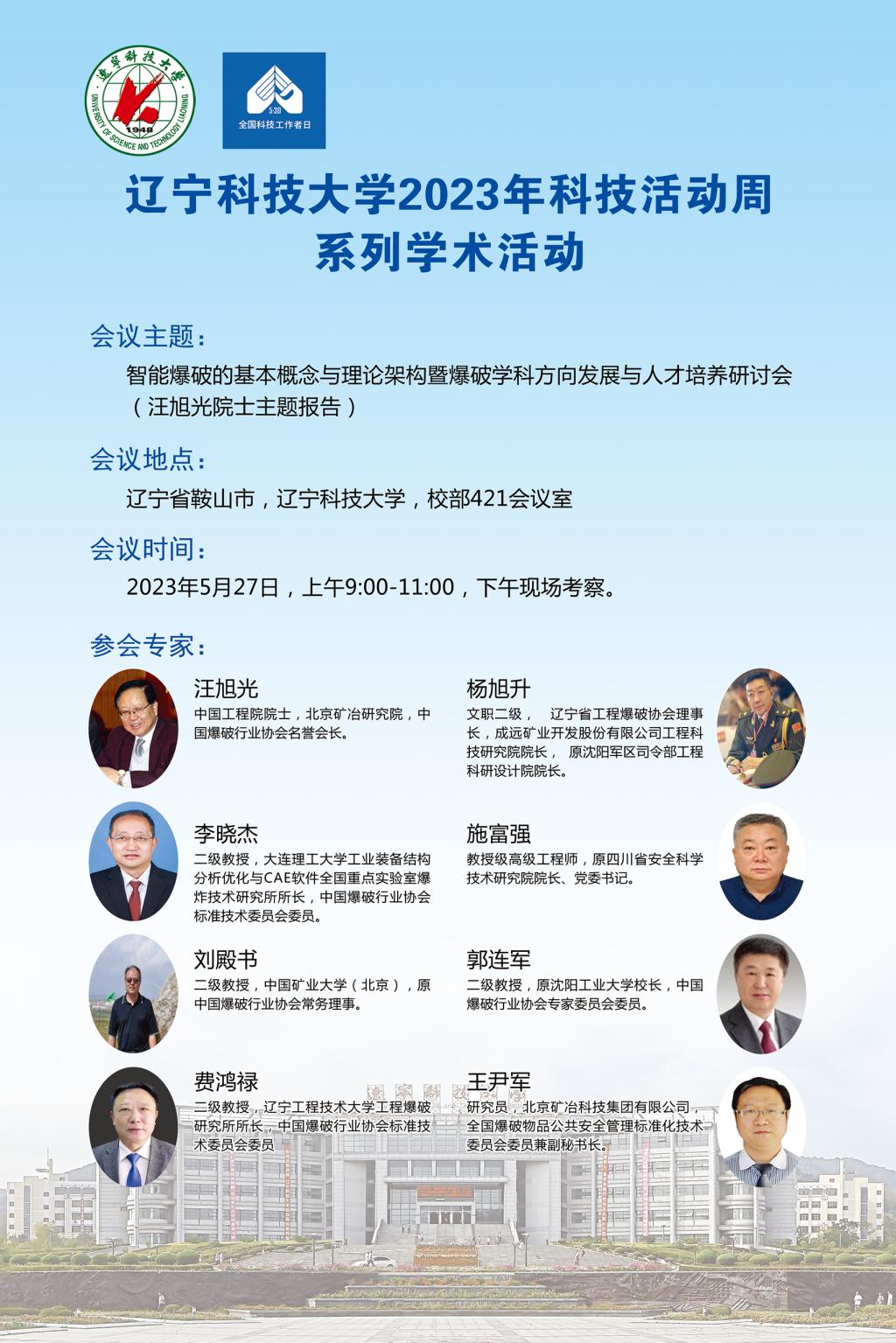 【科技活動周學術預告】智能爆破的基本概念與理論架構暨爆破學科方向發展與人才培養研討會