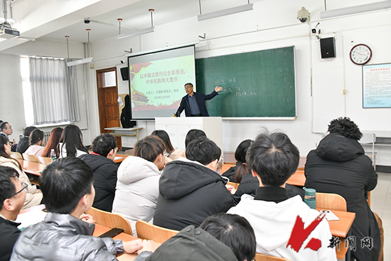 11月29日,遼寧科技大學黨委常委、副校長王錫鋼教授在博學樓C504教室,為英語2022級1、2、3班和工設2022級的學生上了一堂題為《以中國式現代化全面推進中華民族偉大復興》的思想政治理論課。