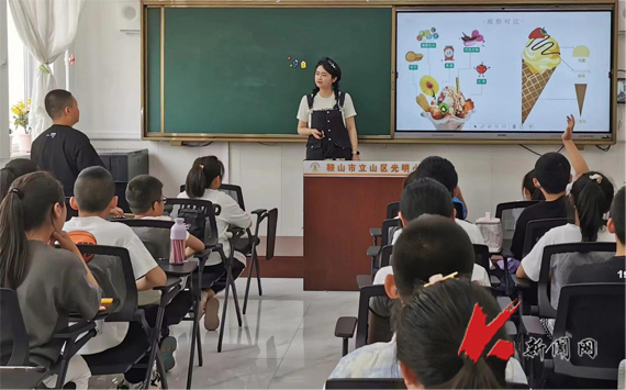 5月30日,遼寧科技大學建筑與藝術設計學院設計學2021級研究生魏斯媛和向蕓秋在光明小學為學生們呈現了兩堂充滿創意與樂趣的美術公開課。