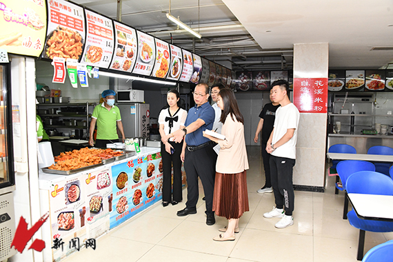 胡軍一行先后走訪了綠茵、桃園、國際、龍源餐廳,重點檢查餐廳環境衛生、菜品種類、菜品價格、餐飲具清洗消毒,食品儲存、加工、銷售規范化方面情況,發現個別餐廳餐廚垃圾回收區地面衛生不達標、從業人員操作衛生不符合要求、餐具洗消和收納不達標、食材清洗不徹底、餐廳防蠅滅蠅不到位等問題,提出進一步加強對餐廳衛生、食材清洗加工和餐具洗消收納的要求和監管力度,通過專項培訓提高從業人員操作規范化程度,增加餐廳滅蠅燈設置數量和設置驅蠅器來加強防蠅滅蠅成效等整改意見。