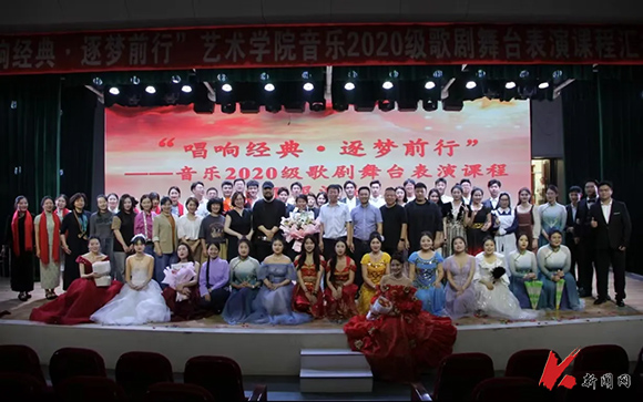 6月13日,遼寧科技大學藝術學院音樂2020級、2021級歌劇舞臺表演課程匯報演出在小劇場舉行。藝術學院領導和師生代表共580余人共同觀看了兩場演出。