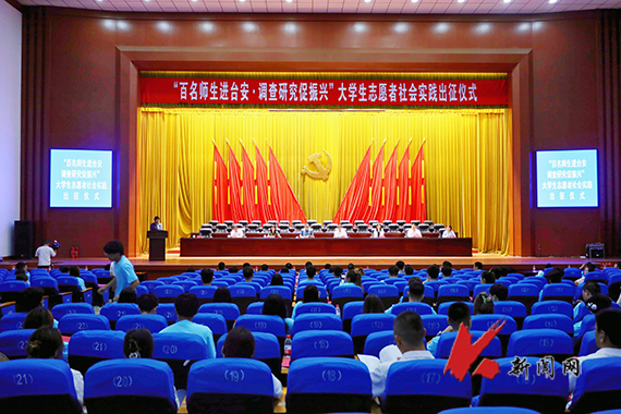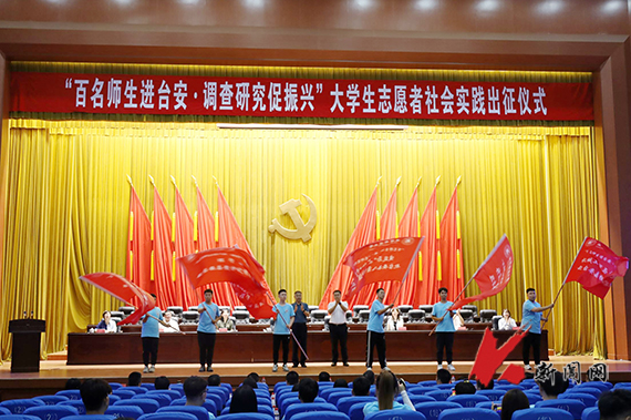 7月11日,遼寧科技大學“百名師生進臺安·調查研究促振興”暑期專項社會實踐出征儀式在鞍山臺安縣會堂隆重舉行。遼科大黨委常委、副校長王錫鋼出席儀式并講話。遼寧省教育廳思政處同志,臺安縣委書記苑振超,臺安縣委組織部部長辛德,臺安縣委常委、副縣長潘軍勇等和140余名遼科大師生參加出征儀式。