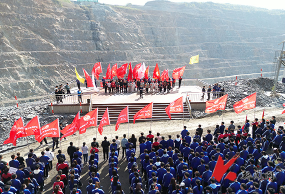4月14日清晨,蜿蜒崎嶇的鞍鋼齊大山鐵礦采場路上人頭攢動、旗幟飄揚,遼寧科技大學黨委書記李平、黨委副書記孫曉華帶領千名師生跟隨全國總工會兼職副主席郭明義的腳步重走礦山路。一張張生氣勃發的面龐、一聲聲振奮人心的歌聲匯聚成這里的一道靚麗風景。