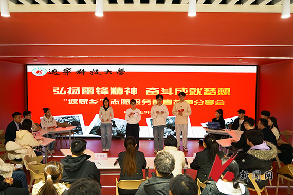 分享會上,大學生理論宣講團成員結合學校志愿服務工作作“雷鋒精神從遼寧走向中國”主題宣講。經法學院“小紅帽”志愿服務團隊指導教師張鵬飛分享崗位學雷鋒志愿服務故事。