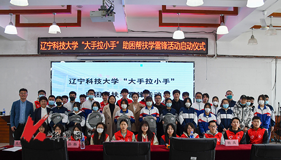 儀式上,宣讀了材冶學院學生材控黨支部在鞍山市第38中學設立“貧寒學子突出進步獎學金”的助困幫扶計劃。材冶學院20名志愿者對接38中學20名家庭經濟困難學生,為他們捐贈書包等學習用品,后續將為其提供學業以及生活上的精準幫扶。