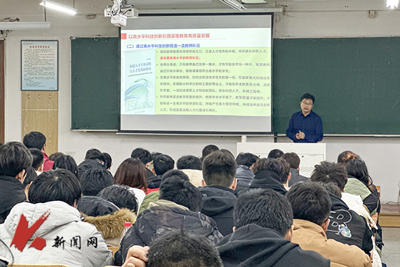 科技處副處長李曉教授在博學(xué)樓C212教室為機械工程與自動化學(xué)院、國際教育學(xué)院師生作題為《發(fā)揮科技創(chuàng)新引領(lǐng)作用,推動學(xué)校教育事業(yè)高質(zhì)量發(fā)展》的專題宣講報告。李曉從科技創(chuàng)新背景、以高水平科技創(chuàng)新引領(lǐng)高等教育高質(zhì)量發(fā)展、以高水平科技創(chuàng)新支撐經(jīng)濟社會高質(zhì)量發(fā)展、深入貫徹落實習(xí)近平總書記在新時代推動?xùn)|北全面振興座談會上的重要講話精神推動學(xué)校教育事業(yè)高質(zhì)量發(fā)展四個方面,深入詳盡地解讀了習(xí)近平總書記重要講話精神。李曉提出從“四個方面”下功夫,實現(xiàn)組織機制“四個轉(zhuǎn)變”,破解科研“三個難題”,“三個堅持”推動產(chǎn)學(xué)研融合,組建新的科研機構(gòu)等內(nèi)容,為今后如何推進工作提供了寶貴借鑒。