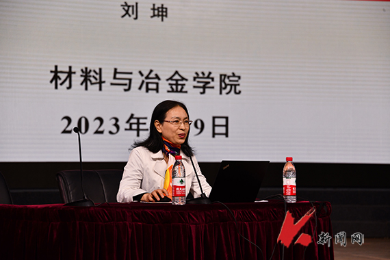 啟動儀式后,材料與冶金學院博士生導師、第二屆研究生“優秀導學團隊”冶金能源高效利用導學團隊負責人劉坤教授作專題報告。劉坤從學校、學院和專業概況出發,以冶金能源高效利用團隊導學共同體構建為例,用一個個生動的實例,闡明了新時代研究生要有理想有追求、要耐得住寂寞、要有團結協作精神、要有規劃、要堅守誠信科研、要學會感恩,并激勵研究生要勇擔時代使命和歷史責任,努力成為嚴謹治學、勇攀高峰、科研報國的新時代研究生。