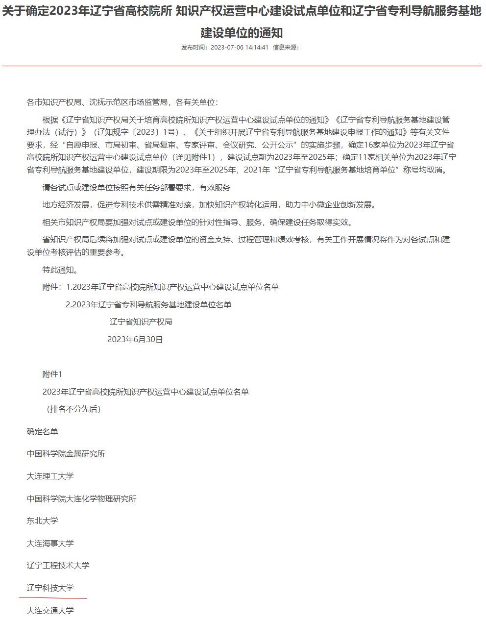 近日,遼寧省知識產權局公布了首批遼寧省高校院所知識產權運營中心建設試點單位,遼寧科技大學成功獲得批定。