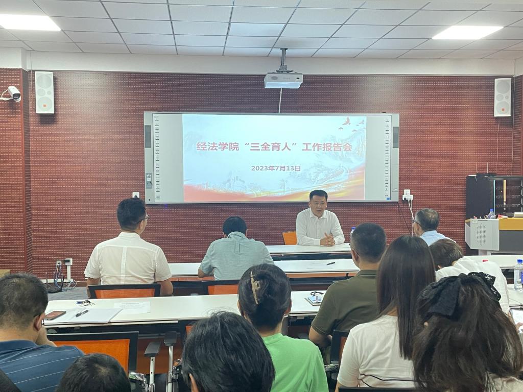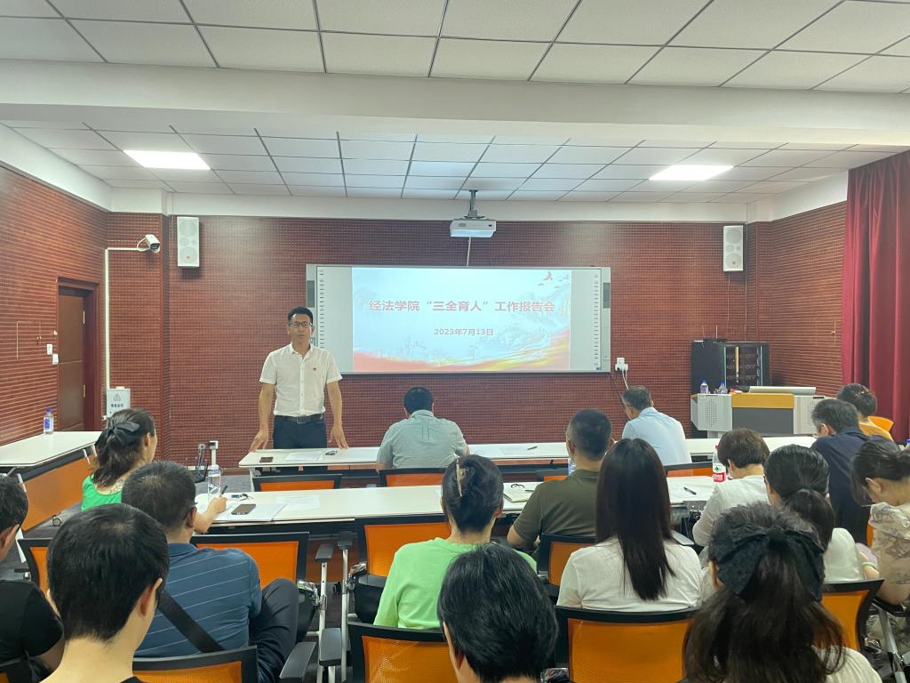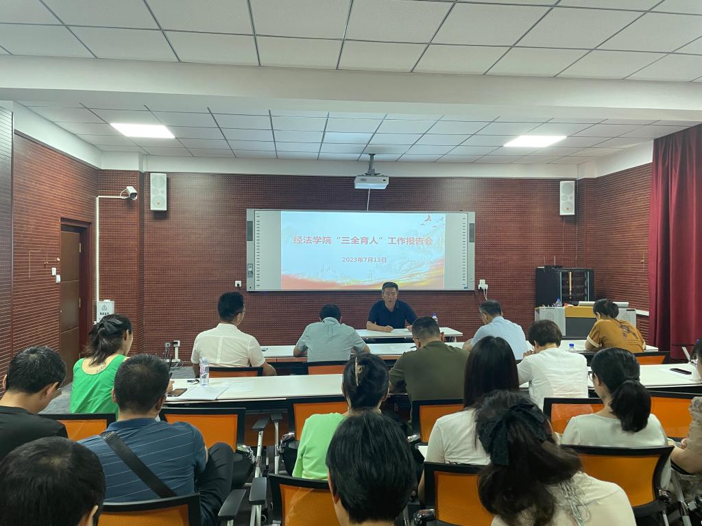 7月13日上午,經濟與法律學院在博識樓A407會議室召開了"三全育人"報告會。會議由學院黨委書記趙智博主持,法律系主任蔣喆,國貿系主任王英凱和學院團委副書記張鵬飛3名教師作經驗交流報告,全院教職工出席了會議。