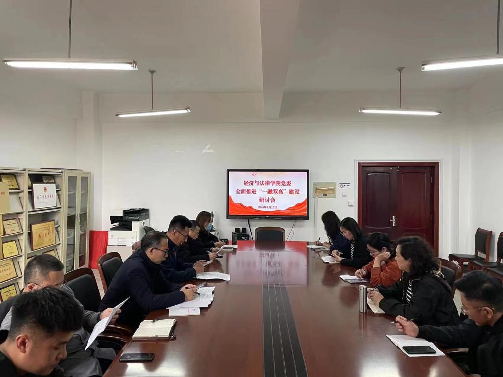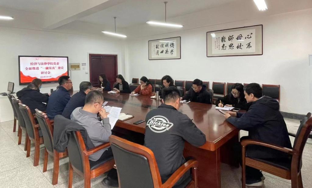 為貫徹落實學校黨委關于全面推進“一融雙高”建設的指導意見,4月15日,經法學院在博識樓A305召開推進“一融雙高”建設研討會。會議由院長郭浩淼主持,學院黨委成員、黨支部書記和系主任參加會議。