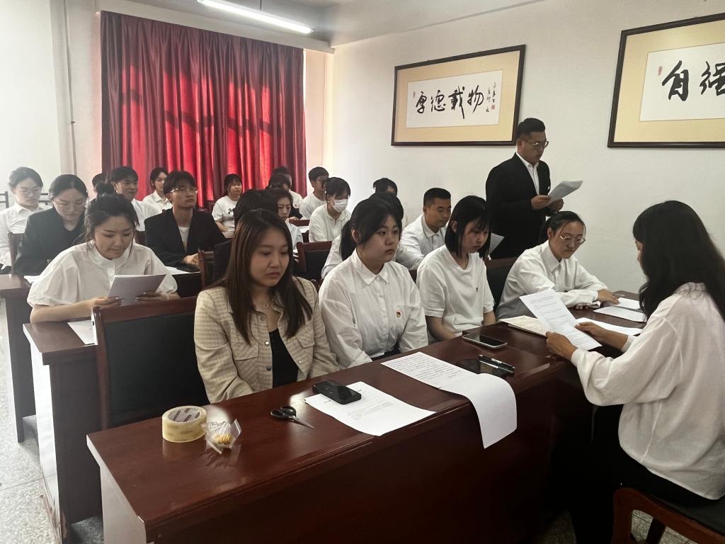 新發(fā)展黨員接收大會后,經(jīng)法學院學生第一黨支部、學生第二黨支部和學生第三黨支部按照組織程序召開預備黨員轉(zhuǎn)正大會,分別討論表決趙子涵等15位預備黨員轉(zhuǎn)為中共正式黨員的相關事宜。會上,預備黨員首先宣讀了轉(zhuǎn)正申請書,匯報個人在預備期內(nèi)思想、學習、工作和生活等方面的成長與不足,他們表示在今后會依舊以黨員標準更加嚴格地要求自己,虛心向?qū)W,以身作則,樹立全心全意為人民服務的思想,在推進強國建設、民族復興偉業(yè)中展現(xiàn)青春作為、彰顯青春風采、貢獻青春力量。入黨介紹人分別從理論學習、思想狀況和工作情況三個方面逐一介紹趙子涵等15名同志在預備期的表現(xiàn)情況,并表示認為趙子涵等15名同志符合共產(chǎn)黨員的標準,建議趙子涵等15名同志按期轉(zhuǎn)正。支部委員會報告培養(yǎng)教育考察情況,提出了支持按期轉(zhuǎn)正的意見。最后,與會黨員充分討論,就預備黨員能否按期轉(zhuǎn)正發(fā)表意見。經(jīng)各支部有表決權的正式黨員討論并通過無記名投票表決,一致同意趙子涵等15名同志按期轉(zhuǎn)為中國共產(chǎn)黨正式黨員,黨支部書記分別宣讀支部同意轉(zhuǎn)正意見,并做會議記錄。