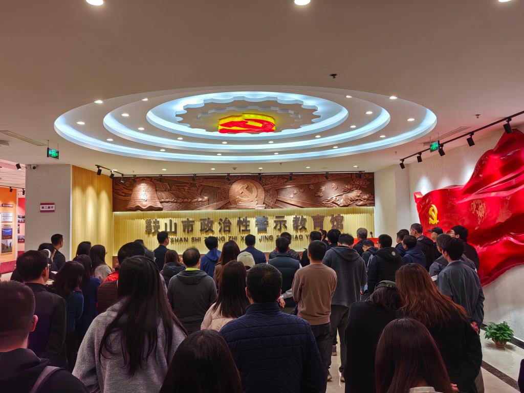 到達鞍山市政治性警示教育基地后,師生黨員跟隨講解員的步伐在館內進行了沉浸式參觀學習。師生黨員們時而認真傾聽,時而駐足觀看,時而陷入思考,歷時1個多小時完成了整個參觀學習過程。