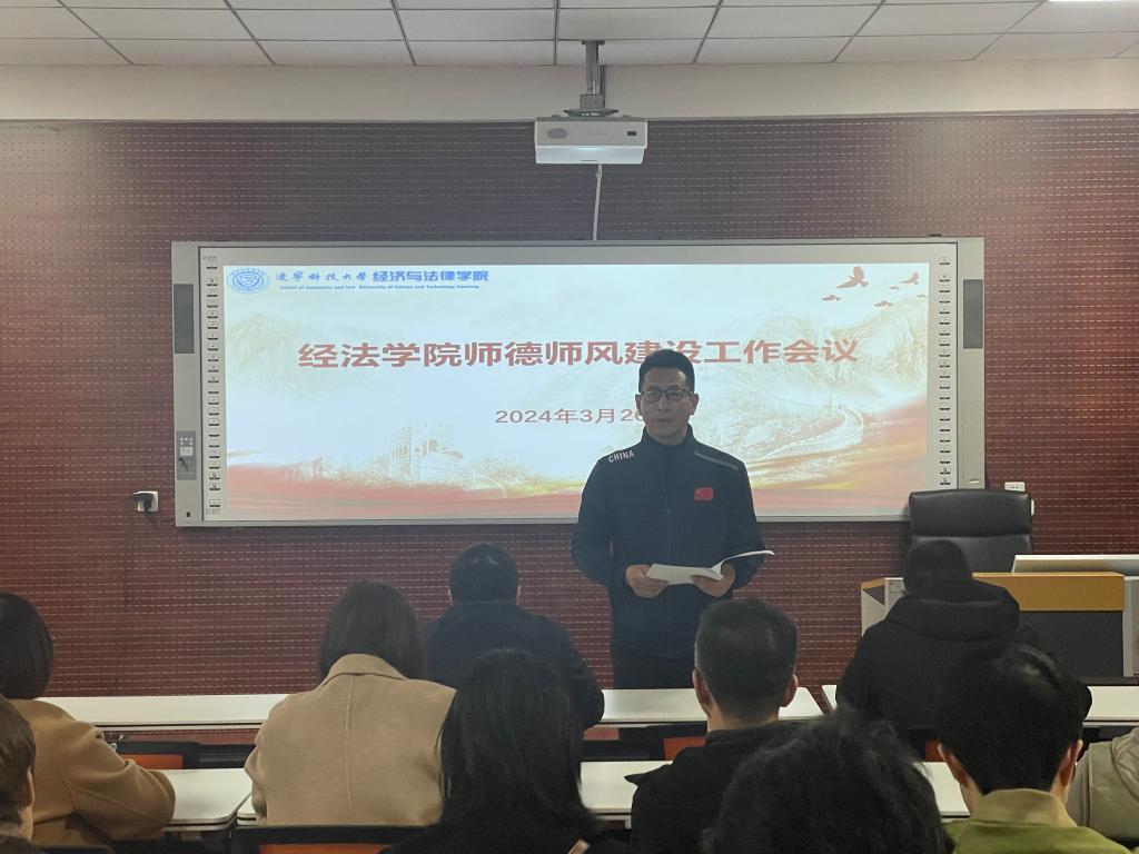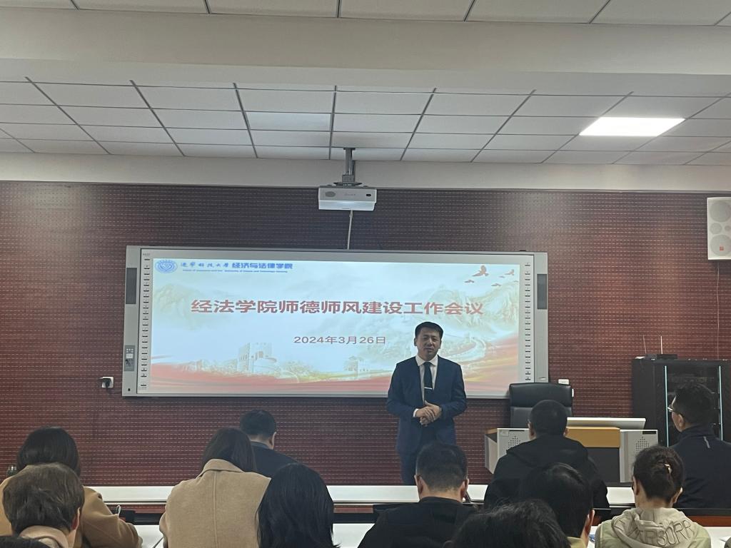 3月26日,經(jīng)法學(xué)院在博識(shí)樓A407召開師德師風(fēng)建設(shè)工作會(huì)議。會(huì)議由學(xué)院黨委書記趙智博主持,學(xué)院全體教職工參加會(huì)議。