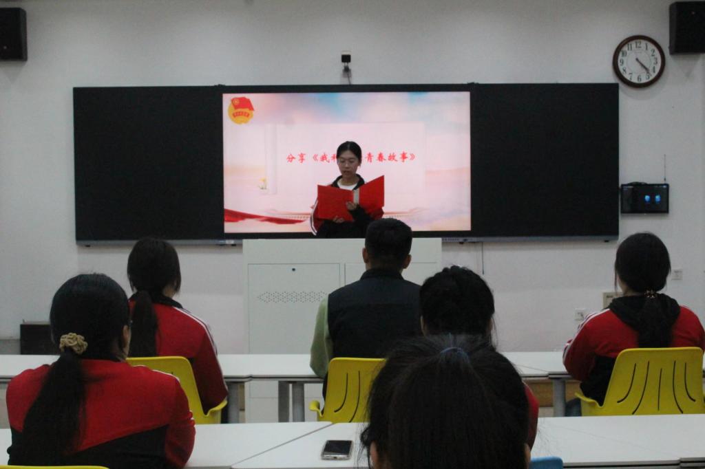 金融22-1班王舒峣、張詩雨分別帶領同學們奏唱團歌、重溫入團誓詞,在慷慨激昂的歌聲與充滿赤誠的宣誓中展現出了屬于新時代青年的青春風采。金融22-1班團支部書記肖薈迪帶領大家學習了中國共產黨的光輝歷程,為同學們講述了抗日戰爭的歷史意義以及發生在鞍山的紅色故事。她指出作為共青團員應該以崇仰之情、敬畏之心認真學習黨的歷史,從中汲取新的智慧和力量,繼續為新時代、新征程而奮斗。金融22-1班于翔琳分享了屬于自己的青春故事,以親身經歷鼓勵同學們要肩負起中華民族偉大復興的責任與使命,在堅定的奮斗中彰顯青春力量。