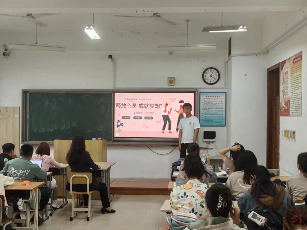 輔導員以“釋放心靈 成就夢想”為主題,向同學們普及心理健康知識、解析心理現象,帶領學生學習維護心理健康的方法,讓學生充分意識到心理健康的重要性,并和同學們分析了大學生常見的心理問題,鼓勵大家學會表達自己的情緒,大膽說出自己在學習生活中的困惑,在交流中尋找解決問題的方法,疏解心中的郁結。隨后,同學們紛紛表達自己對心理健康的認識和感受,談到了自己所面對的壓力和困惑,輔導員一一解答了學生的困擾。同時,輔導員表示,同學們要認識到每個人都是與眾不同的,要學會接納和欣賞自己,發現自我的獨特性,勇敢且堅定地去追求自己的夢想。